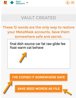 Una cosa importante a la hora de tu registro en Metamask son las 12 palabras clave que te salen. Interesa capturarlas en pantalla y también escribirlas en una hoja, ya que son sumamente importantes si le pasara algo a tu ordenador (el donde tienes el Metamask instalado, que es solo ahí) para poder restablecerlo en otro ordenador. Si se pierden estas palabras, no habrá forma de llegar a tu cuenta Metamask y a los ETH guardados ahí.